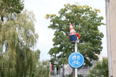 Op ut Bolwerk is ut blykber altyd feest, en su as bij alle feestjes mutte je self de fersierings wel anbrenge. Dat het blykber gyn probleem weest. Bij gebrek an kleurege slingers is der un moaie wit-roaie pilon op un ferkearsbòrd del setten. Ut is even werk, mar dan hewwe je ok wat!