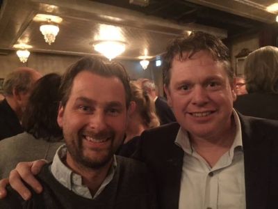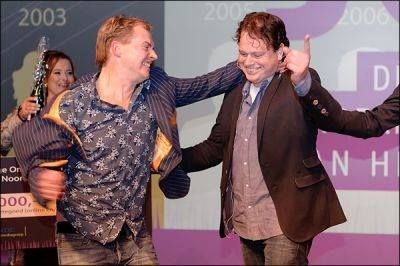 Op de foto: Arjen Rusticus (links) en Bas Hollenberg in 2011 na het winnen van de Jonge Ondernemersprijs.