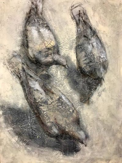 In haar materialen en technieken is zij op zoek naar tegenstellingen. De dragers die Irma gebruikt zijn masonite, mdf, zink en staal. In haar techniek zoekt zij het contrast: transparantie of sterk verdunde druipers tegenover dikke lagen verf, verf tegenover de structuur van de drager en lichte, bijna onaangeraakte gebieden tegenover donkere, doorgewerkte partijen. De olieverf schilderijen van Irma blijven je bij door hun intimiteit, ongekunsteldheid en de krachtige manier waarop ze gemaakt zijn en dringen ook, als ze uit het oog verdwenen zijn, verder tot je door. De geëxposeerde werken zijn qua thema’s divers. Zo toont zij duiven, vissen, bloemen en mensen.