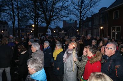 Nadat gisteravond vanuit de RK parochie aan de Singel het licht was opgehaald en mee genomen door verschillende geloofsgemeenschappen naar een woning in de vier verschillende wijken van de stad, werd datzelfde licht in processie terug gebracht naar de Martinikerk.