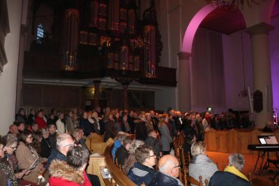 Ut is te hopen dat dit koor niet voor het laatst heeft opgetreden, want het klonk vanmorgen echt als een klok! De dienst werd afgesloten door massale samenzang onder begeleiding van Folkert Binnema op het grote orgel: U zij de Glorie. Menig traantje werd weggepinkt.