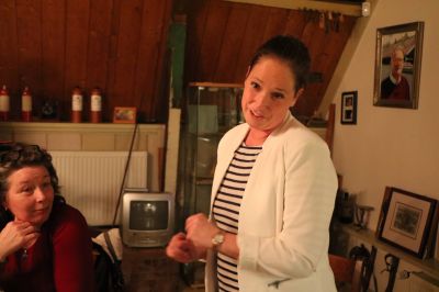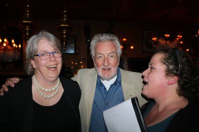 Harm Rozenberg, gisteravend ok anwezech, tussen Afke Henni ( rechts fan Harm )en Annemieke Steemers.