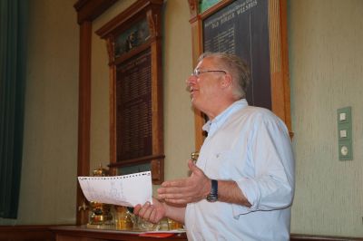 Dr. Hans Koppen fersòrgde dêrna met opnieuw un súblieme lezing over de geskiedenis fan de stad en de ouwe raadsaal ut earste gedeelte fan de avend. De avend wurdde tradisjoneel afsloaten bij de Weduwe Joustra dêr’t un entûsiaste Fardou un prachtech ferhaal hield over de histoary fan ut familybedriëf an ut Kleinsaan.