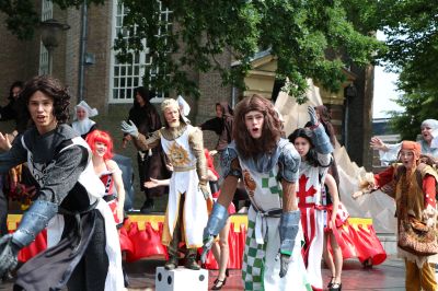 Eerste foto: Leerlingen van Muzt zingen en spelen een aantal songs uit Spamalot
