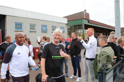 En wat te denken van dat je gespeeld hebt tegen Sjaak Swart, Mister Ajax! Daar ging het dus om. De wedstrijd stond onder leiding van toparbiter Hessel Steegstra. Na afloop werden de voetbalcracks van toen nog getrakteerd op een heerlijk buffet van Kees Leeuwen en werden de anekdotes steeds mooier.