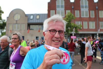 De sympathieke zwemmer probeert met velen zoveel mogelijk geld op te halen voor het KWF. Van der Weijden werd gistermiddag op uitermate plezierige wijze geïnterviewd door Paul Clement, samen met Joey Hereman presentator van het Mar.Athon loopfeest in Sneek.