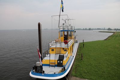 Op het dek van ‘de Dorstlesser’ stonden divers zomers gekleede Putkapelfans te swingen en te drinken. Regelmatig werd er een bommetje gemaakt, wat zo nu en dan toch wel even link was als er bootjes met buitenboordmotoren langs voeren.
