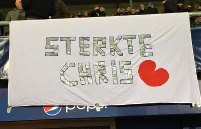 Gisteravend met B. naar SC Heerenveen-Vitesse weest. Un wedstryd, hoe gek ut ok klinkt, nyt om foetbal draaide mar om Chris de Wagt, trener fan de beloften fan SCH. Chris is ernstech siik en in ut stadion hingen spandoeken foar Chris en syn family. Heftech allemaal, seker at ik teruchdenk an ses jaar leden toen Chris bij mij an ut bêd in ut MCL ston…