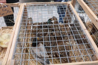 Ik kan my nòch goëd herinnere hoe’t ik op dinsdachmòrrens op de Sneker feemerk groate Flaamse Reuzen in te kleine hòkjes sach. In Brugge is dat nòch altyd su en de eenden en kipen dy’t foar un tientsje te koop anboaden wurden saten der nou ok nyt bepaald jofel bij.