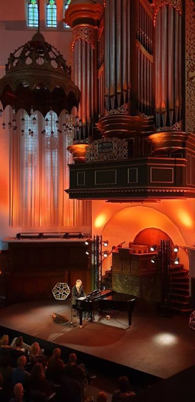 “Het publiek wordt een medespeler. De ruimte wordt een regisseur.Het fijne van spelen met de band is dat je er af en toe kunt uitstappen als zanger...je luistert,neemt even afstand en springt daarna weer in het geheel. Het fijne van een solo als deze is dat je voortdurend in het hier en nu bent. Dat maakt elke avond anders. Na twee mooie achtbaan trajecten in IJsselstein en Barendrecht was het gisteren de Koepelkerk in Leeuwarden... een ruimte die me een heel andere kant op dirigeerde.....opeens klinkt alles gedragen en het is zalig om daar mee te spelen...het idee dat er een kansel en een orgel boven je kop hangt is al als een prachtig zwaard van Damocles.”