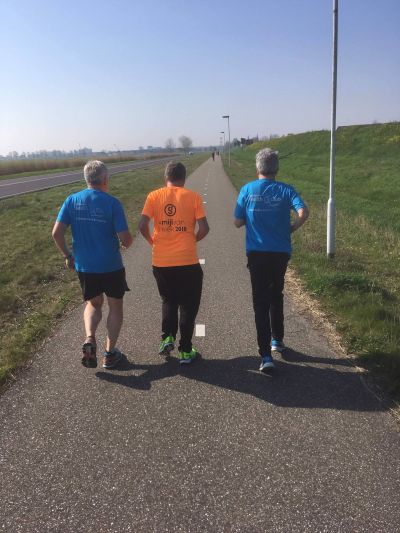 Had ik nòch nyt earder metmaakt. Mocht ik fan Martin nyt eens even 'op de plaats rust'. Nyt deurlope en aansens gewoan 4 x 10 minúten achter mekaar drave'. Want dat was ut programma fanmòrren. Uiteindelek lukte ut dêrna wonderwel en klokten we op dizze stralende Befrijdingsdach mar liefst 7.4 km! Moai met de matty's Age & Kees, su as ut hoart....