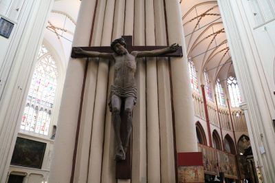 Dan maakt ik bewust kontakt met de befòlking, dy’t nòch nyt moëd skynt te wezen fan de toeristen. Prachtege kerken en basiliken het de stad, mar ok dêr komt der amper mear fòlk bij de mis fertelde un frijwilleger fan un sallonkerk (‘de schoonste van Brugge’). Gesoademiter met un biskòp ‘die met de kindjes had gespeeld’, had de plaatseleke parochy gyn goëd deen fertelde hij mij. Ik loof ut graach.