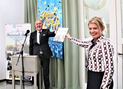 SNEEK- Vanmiddag heeft burgemeester Jannewietske de Vries uit handen van CvdK Arno Brok het historisch stickerboek ‘Ontdek de geschiedenis van Sneek’ in ontvangst genomen. De uitgave is samengesteld door Vereniging Historisch Sneek (VHS), in opdracht van Albert Heijn Stadsfenne. Het initiatief om het boek uit te geven is van Robert en Doremiek Grakist, de franchise-ondernemers van de Albert Heijn uit de Stadfenne.