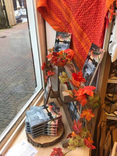 Schrijver Gerrit de Boer, wilde graag het boek komen signeren in boekwinkel Het Kompas, maar helaas door corona lukte dat niet. Daarom heeft de auteur briefjes getekend die in de boeken zijn gelegd. Gerrit de Boer beschrijft zijn oorlogservaringen als kind. Eerst vanuit IJmuiden, waar hij bombardementen meemaakte. Later vanuit Sneek, waar zijn ouders veel onderduikers verborgen. “Ik werd wakker toen iemand mijn neus dichtkneep. Geschrokken kwam ik overeind. Mijn broer stond naast het bed en zei: 'Vuurwerk, we mogen even buiten kijken, kom op!' Slaapdronken en verbaasd liep ik hem achterna. Op de trap hoorde ik geknal. 't Was nog donker. 'Kom maar even', zei vader en hij sloeg een sjaal om mij heen. In de verte werd hevig geschoten. Vliegtuigen vlogen gierend over. 'Het is een vuurgevecht, Engeland tegen Duitsland', zei mijn broer. 'Ja klopt', antwoordde vader, 'de Engelsen hebben de Hoogovens gebombardeerd en de Duitsers proberen de vijand te verjagen...”
