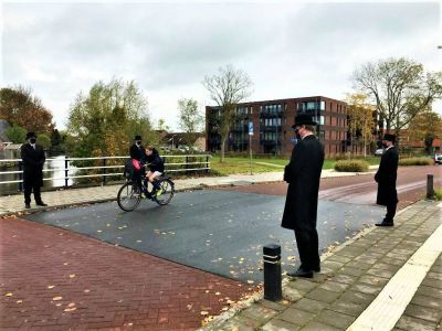 Dat het un reden: thús omklede in ferbaan met de Covid-19 maatregels! Op ut moment dat de jonge delfytst staan de begeleiders fan de roustoet in de wacht op de dingen dy't komme salle. Ut is hast symboalys foar dizze tiid! |
