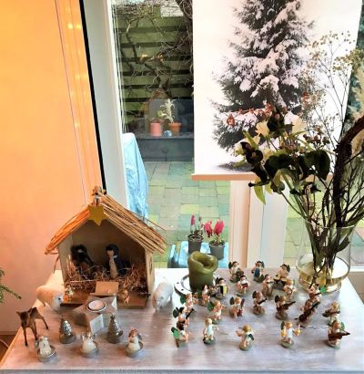 Fanmiddach bakje koffy bij Y. dronken, dy't ok su'n moaie kerststal staan had. Allemaal houten múzikanten, met de haan maakt, bij de stal. Niks mis met!