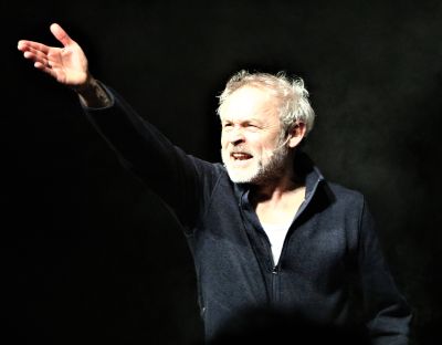 De samenwerking tussen Stef Bos en de band is vertrouwd en uitermate relaxed, hoe mooi kan een muzikale theatervoorstelling zijn?! Geen enkel moment verslapt de aandacht, de stem van Bos is authentiek en warm, zelfs als hij verkouden is. Is zijn zang perfect? Welnee! Het zijn de teksten, een genot om naar te luisteren zijn. Woordkaviaar van de bovenste plank. De ene regel blijft nog langer hangen dan de andere. Stef Bos zingt zich voortdurend naar boven, zoals hij zelf al aangeeft in het magistrale De Klim. Ik heb een schijthekel aan dichters en zangers die ellenlange intro’s over hun werk houden, maar bij Stef Bos past het juist. Hij boeit en de teksten krijgen door de info nog meer waarde, bovendien kan het ook in een theater met luisterpubliek.