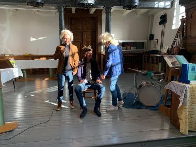 Tegare met grimeur Arjen van der Grijn hewwe we Eddy, en dat was un ferrasing foar hem, kroand tòt Koaning Louis de Eerste! Hilariteit in de kerk. Wat is suks tòt prachtech om te doën.