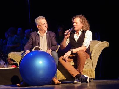 Twee keer een uitverkocht Theater Sneek! Daar zorgden de leerlingen de basisschoolleerlingen van stichting Palludara en leerlingen van csg Bogerman (CVO Zuid-West Fryslân) gister- en eergisteravond voor tijdens twee bijzondere muziekvoorstellingen in de Sneker schouwburg. Meer dan 300 jongeren in de leeftijd van 9 tot 18 jaar beklommen het podium om hun niet geringe talenten met het publiek, veel ouders en pakes en beppes, te delen. Special guest Syb van der Ploeg zong met leerlingen de sterren van de hemel over het thema dat hem helemaal aanspreekt: ‘Leven voor muziek en sport’. Hij liet het beide voorstellingen zien, zingend en op een skippybal!