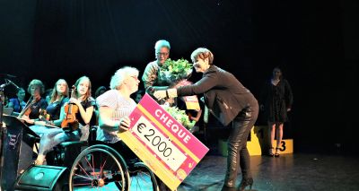Als klapper kon ook nog eens tweemaal €2000 aangeboden worden aan Stichting Muziekotheek en Stichting Aangepast Zeilen Sneek (SAZS).