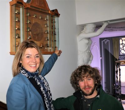 Na het in ontvangst nemen van de oorkonde en het tientje vindersloon, gingen Sjoerd van der Hem en burgemeester Jannewietske de Vries nog naar de hal van het monumentale stadhuis aan de Marktstraat. Daar waar nu de restauratie in volle gang is, weest De Vries de plek aan waar het speciaal gemaakte houten ei, met inscriptieplaatje’, komt: Een prachtig kastje, ooit gemaakt door de Sneker gemeentetimmerman Jan Terpstra.