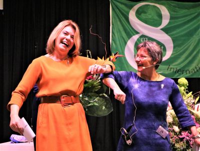 Fanmòrren mocht burgemeester Jannewietske de Vries de dach opene en dêrbij sagen we um moai corono-ellebooch-momentsje. Gelukkech had ik de kamera paraat foar un bysòndere foto.