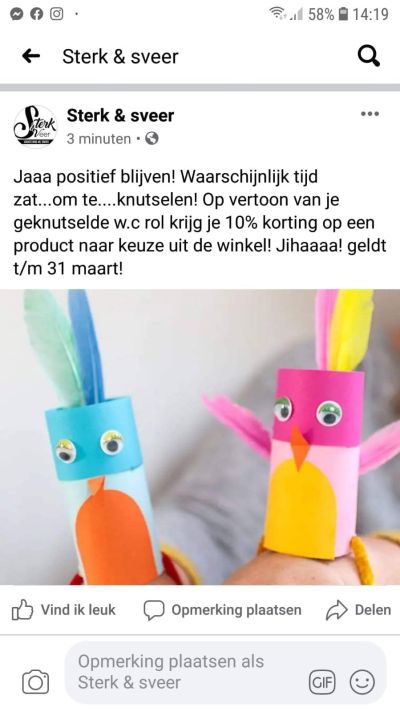 Blykber relativeare oans kyndes ut un bitsje en komme su nou en dan met liëve berichtjes en 'hart onder de riem acties'.