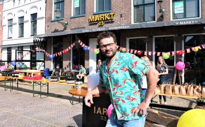 Op'e foto's twee Sneker horeka ondernimmers út de Marktstraat dy't der nòch wat fan probeare te maken: Wicher Wind en Eldad Lasker.
