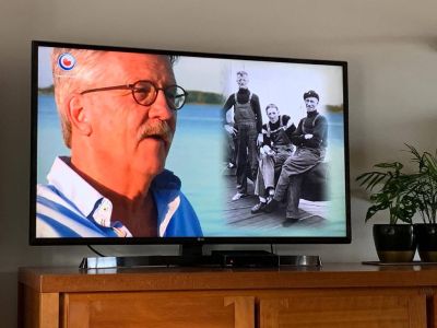 sonder ferder un woard te sêgen loop ik naar ut Kleinsaan staan in ut Fries Skeepfaarmuseum ooch in ooch met Sytse Hobma Dicky van der Werf en Jan van de Akker op ut dek fan ’e Sneker Pan -prachtfoto fan één groate family 75 jaar SKS skûtsjesilen’
