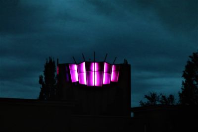 Fanút ut slaapkamerrút dit fraaie útsicht op de teatertoren fan Theater Sneek. Doët mij goëd om ut licht te siën! Mar in alle earlekheid: hoe lang gaat ut nòch goëd.