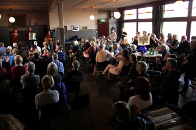 En er was een muzikale hommage van o.a. Bram z’n dochter Katarina Vermeulen en de Dopegezinde Gemeente. Sneker Peter Bax, samen met Tamara en Katarine Vermeulen samensteller van het boek, beleefde een gouden avond: “Ik hew jum nyt fergees naar ut teater komme laten nou?!”