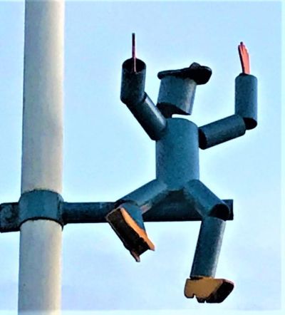 Toen ik terchreed hew ik de kreasy tòch mar even op'e foto setten. Sit der un betekenis achter? Het ut mantsje un naam. Wat is syn skepper(m/f). Hoe langer ik der over nadocht hoe mear ik begon te fantasearen. Mar bij de wee: Wie weet hier mear over te fertellen. Jum magge ok gewoan ferder fantaseare, ut is in elk gefal even wat anders as Trump & Covid-19!
