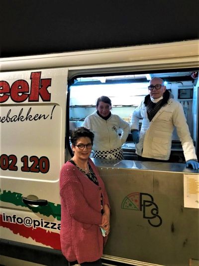 SNEEK- De pizza proeverij in sociaal pension Wender, aangeboden door Pizza Drive Sneek van Andreas en Jelly Kuipers, viel vanavond goed in de smaak. Even voor zessen parkeerden de familie Kuipers hun herkenbare bestickerde pizza bus (https://www.pizzadrivesneek.nl) aan de zijkant van het sociaal pension aan de Lemmerweg. Daar konden de bewoners een bord vol met overheerlijke pizzapunten vandaan halen. “Wij kiezen elk jaar een goed doel uit om mensen te laten proeven van onze pizza’s. Het is ontzettend aardig en dankbaar om zoiets te organiseren”, vertelt Andreas. “We hebben deze pizza bus nu vijf jaar en het bevalt uitstekend. Wij komen in plaatsen en dorpen waar normaal gesproken geen pizza’s bezorgd worden. We maken bij het bereiden van onze pizza’s gebruik van uitsluitend verse producten. Vanavond serveerden wij alle pizza’s die wij in het assortiment hebben. Dus niet alleen de goedkoopste pizza’s” vertelt Andreas.