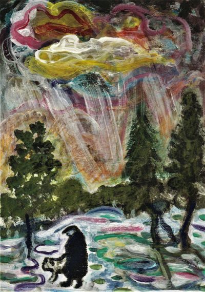 hoochút wat groëne dennetakjes achter ut skilderij met de Goede Herder en syn skaapkes dêr bleef ut dan wel su’n bitsje bij