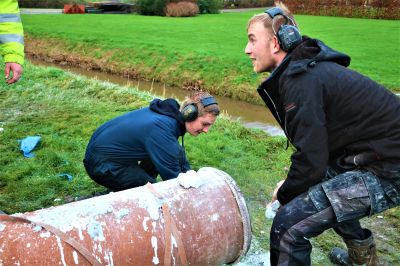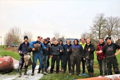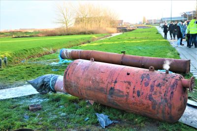 OSINGAHUIZEN- Even voor de klok van vier vanmiddag zwijgen de carbidkanonnen in Osingahuizen bij Heeg. Een grote groep jongeren uit Osingahuizen heeft zich verzameld rond een aantal melkbussen en twee ‘carbidkanonnen’ als er twee Handhavers van de gemeente Súdwest-Fryslân arriveren. Dan is het uit met het geknal.