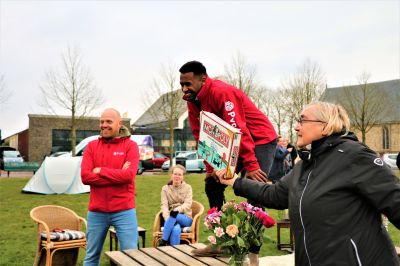 Na ut draven in ut burgemeester De Hooppark binne we bij maat Jan Dommertholt op ut kamp weest. Bakje koffy met wat lekkers. Moaie ferhalen, want Jan is un ferhaleman pur sang, dy't ut freeslek fynt dat hij deur corona nou nyt naar de spòrtskoal kan.