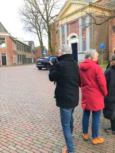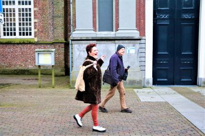 Akke Cleintuar-Elgersma (57), de aanjager van het Sneker eerbetoon duikt weg in haar winterjas. Ze geniet zichtbaar. In de tas die ze meegenomen heeft zitten twee plakboeken vol met knipsels van de Golden Earring. En een fles rode wijn voor de stadsbeiaardier. Dat komt later.