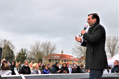 De kou lijkt het kandidaat-Kamerlid niet te deren, zo vurig houdt hij zijn toespraak. Even flitsen oude beelden van Pieter Jelles Troelstra door mijn geheugen. Foto’s waarin een flamboyante Troelstra het volk toespreekt. Ook Habtamu de Hoop is bevlogen, ook hij balt de vuisten als hij enkele tientallen mensen toespreekt op de Terp, zijn Terp van Wommels: “It is te gek foar wurden dat der yn Nederlân minsken binne dy’t 590 wennings besitte en se binne noch prins ek!”