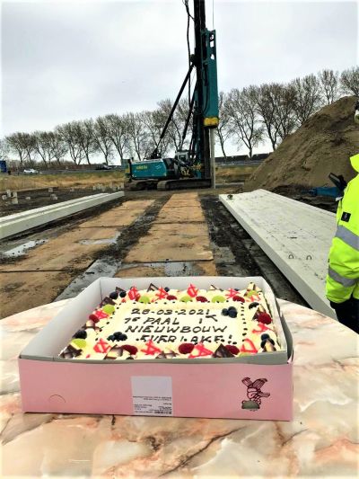 Kort daarvoor hadden de werknemers van het Sneker bedrijf al een handtekening op de heipaal geplaatst. De feestelijke plechtigheid was volledig coronaproof: taartje eten en proosten op afstand. Sneker bedrijf