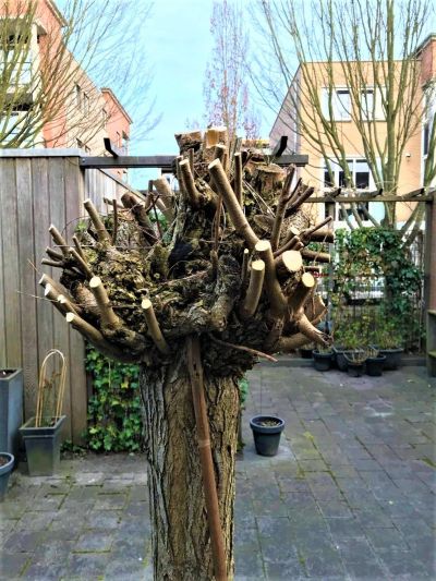 De bolacacia het wear un snoeibeurt had. Amper foar te stellen dat der aansens un skadúwboom achter in de tún staan sal. Mat ik hew der alle frtrouwen in, ut sal altyd goëd komme. Ok op un stienkouwe Paasdach in coronatiid!