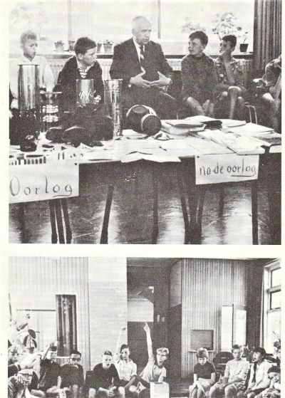 Ik bin der ook seker fan dat met hun ‘moderne’ didaktise anpak fan bovennoemde fakken bij mij de belangstelling foar geskiedenis wekt is. In ut boek un foto, dêr’t op te siën is hoe’t meester de Vries an ut fertellen is.