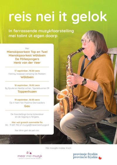 simen fleurege blije man met deurleefde markante kòp dy’t sumar ut liet Skeepken onder Jezus’ hoede speult op ’e mondharmonika dy’t hij trouwens mûlharp noemt