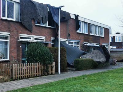 Oans fotograaf Jan Douwe Gorter was fanmiddach wel onderwech om foto's fan de stòrmskade te maken. "Myn fyts flooch op un gegeven moment letterlek de lucht in", appte Jee Dee!