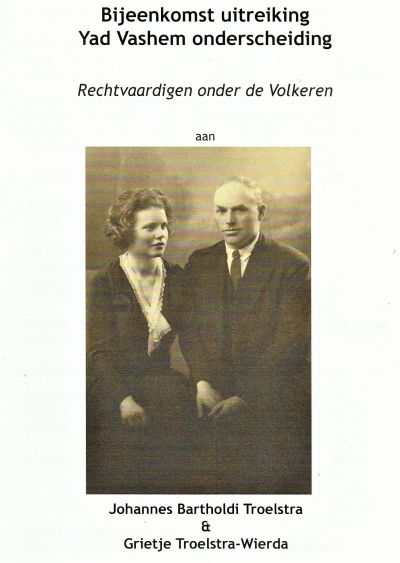 Yad Vashem onderscheiding postuum uitgereikt aan Johannes Bartholdi Troelstra & Grietje Troelstra-Wierda