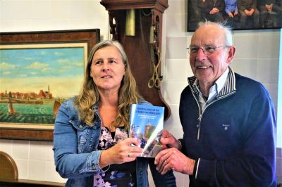 HINDELOOPEN- Henk Kroes, de bekende ijsmeester en oud-voorzitter van de Koninklijke Vereniging De Friesche Elf Steden, heeft vanmiddag uit handen van schrijfster én fietsglobetrotter Marica van der Meer haar boek ‘Fietsen langs de elf steden van Friesland’ in ontvangst genomen.