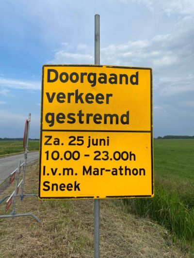 De Arriva bus brengt oans naar de Mardyk, dêr’t de start is. Dêr ankomen magge we nòch un warming-up kilometer naar de start toelope. Onderwech allemaal kreatieve teksten op bòrdsjes fan ‘zwaaien met je handen’ tot ‘huppelen als een vrolijk kind’.
