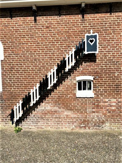 Bij dy buurman sagen we oans op ut hiem de ogen al út’e kòp. Alliennech un echt autentyk skythús en un wònderbaarleke moaie oud kipetrapke was al genoech om un sucht fan genot te slaken. Jeumenikkus wat moai!