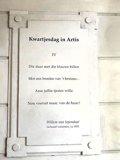 Nee, nyt de opsloaten dieren in Artis spreken mij fandaach an, mar wel de prachtege poësy fan Willem van Iependaal (1891/1970) in de Amsterdamse dierentún.