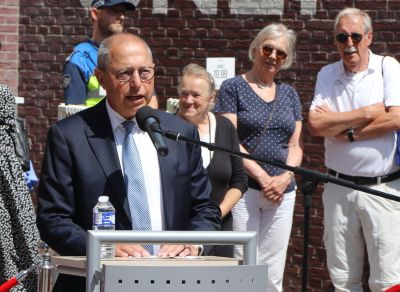 “Het is onze taak, nu we hier staan, om niet alleen te rouwen om wat verloren is gegaan, maar ook om een boodschap van hoop en verzoening uit te dragen. Dit monument symboliseert niet alleen de geschiedenis, maar roept ons ook op tot actie. Het herinnert ons eraan dat we moeten blijven streven naar een wereld waarin diversiteit wordt gekoesterd en waarin niemand ooit weer wordt vervolgd vanwege hun geloof, afkomst of overtuigingen”, hield Wallage het gehoor voor.