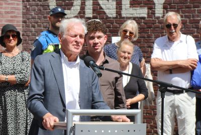SNEEK- “Vandaag zijn we hier bijeen om een monument te onthullen op de plek waar ooit de prachtige synagoge van Sneek stond. Dit monument draagt niet alleen de herinnering aan een gebouw, maar ook aan een rijke geschiedenis van de Joodse gemeenschap die hier leefde, lang voordat de donkere schaduw van de Tweede Wereldoorlog over ons land viel”, met deze woorden opende Marcel Wallage vanmiddag zijn speech, ter gelegenheid van de plechtige onthulling van het Nieuw Joods Monument aan de Wijde Burgerstraat. Daar waar ooit de synagoge van Sneek stond.